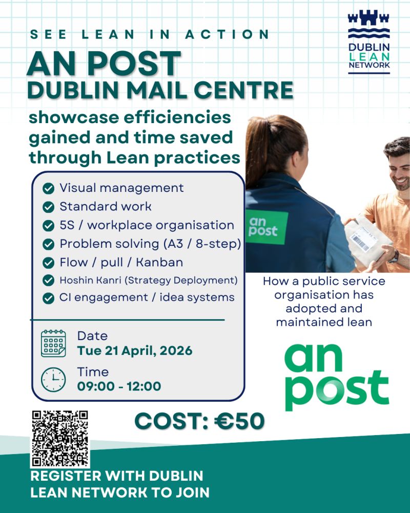 Dublin Lean Network are delighted to offer this onsite visit at An Post Dublin Mail Centre.
